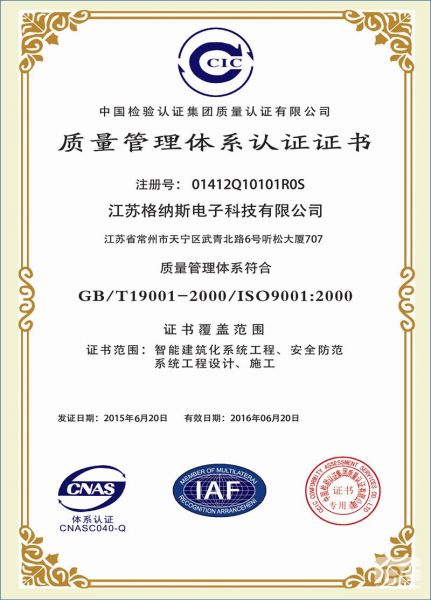 质量管理体系认证证书