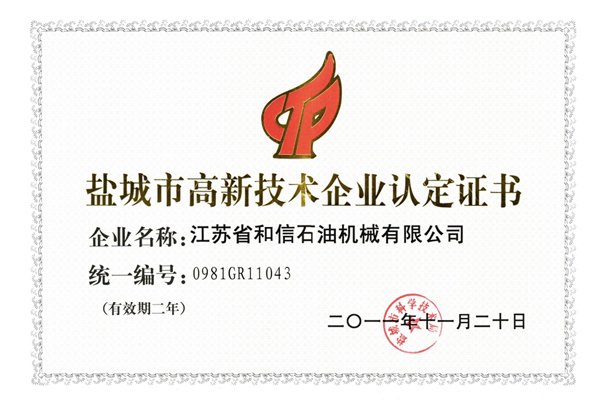 盐城市高新技术企业认定证书