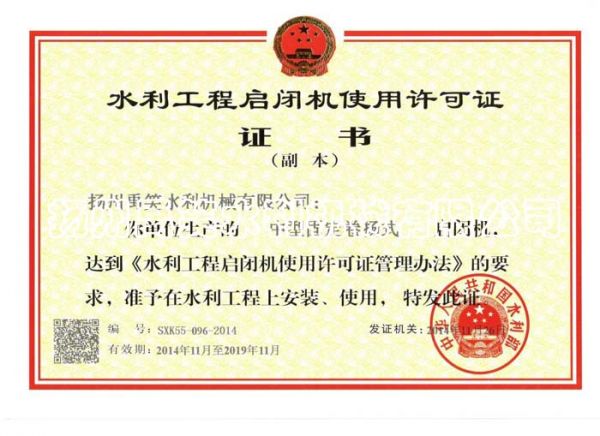 闸门生产许口证