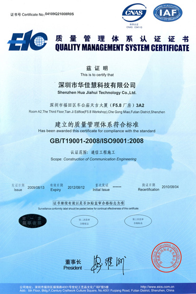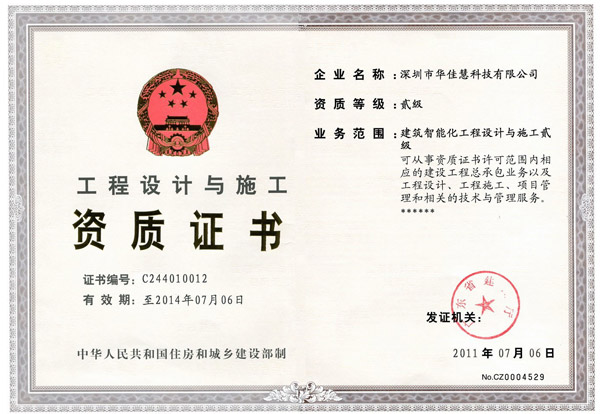 深圳市华佳慧科技有限公司是一家集通信传输设备购销、通信工程施工、计算机网络系统集成的专业公司。公司成立于1998年,注册资金1100万,具备国家建筑智能化企业资质证书二级、电信工程专业承包资质;并于2013年被认定为“国家高新技术企业”。 截止2014年,公司拥有在职员工50余人,其中具有本科以上文化程度的人员占90%;具有中高级技术职称的技术人员占50%。2004年至今共创产品销售额达1.5亿元,承接局内外工程800多项,完成工程总投资约2.5亿元,工程项目的优良率达到99%以上。 自1998年以来华佳慧科技有限公司承担了中国电信、中国移动、中国联通等各项通信建设项目,完成了三大运营商SDH主干传输网、移动3G通信基站、电信大客户传输、交换、电源、FTTX设备、DDN网、数据专线、通信管线和智能小区工程的建设。 核心理念 一、行事原则:“务实、理...... [ 查看详情 ]