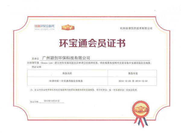 环宝通会员证书