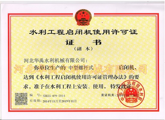 螺杆启闭机使用许可证1